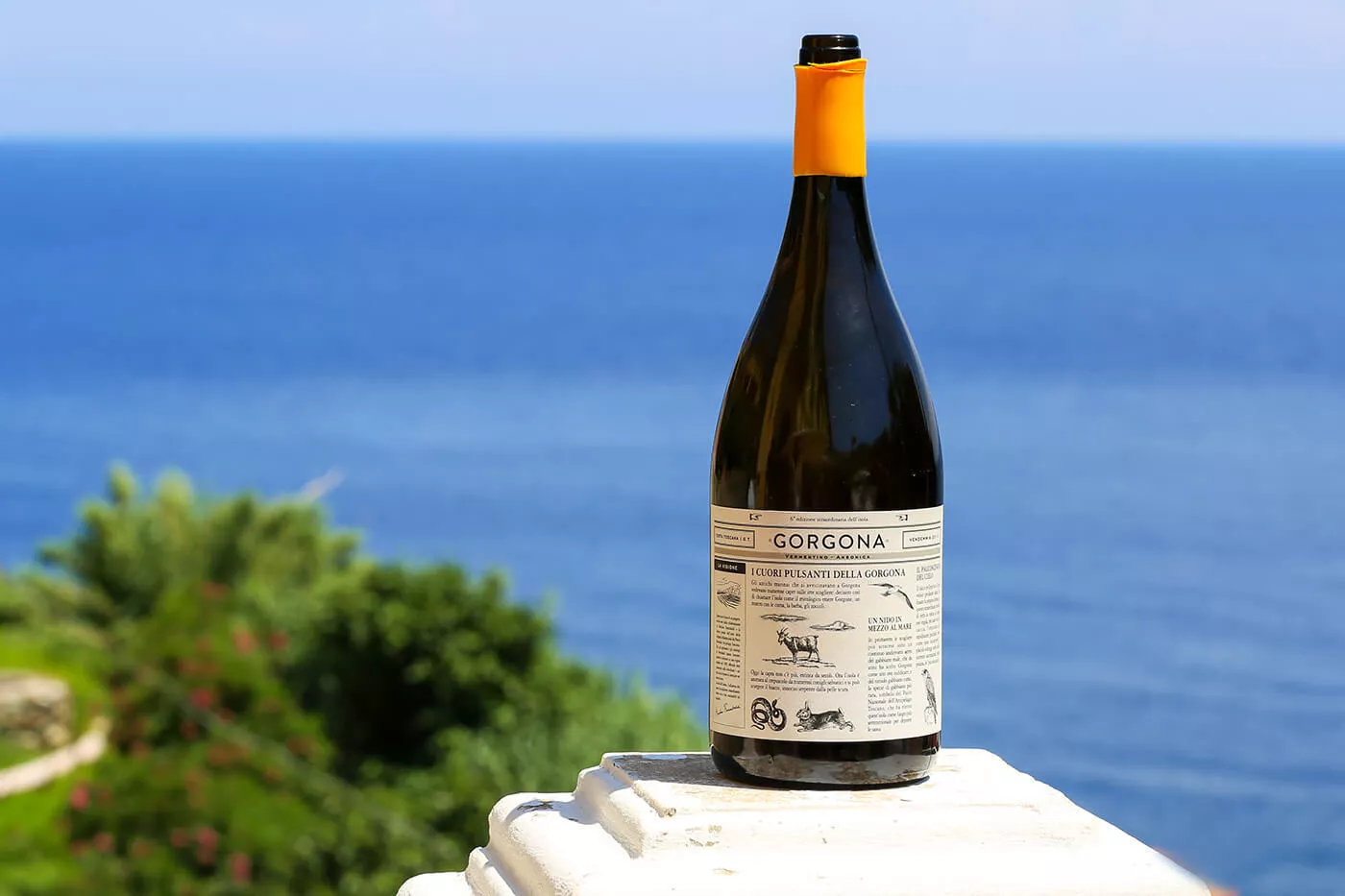 Gorgona Rosso vede la luce con la vendemmia 2015, da alcuni filari di Sangiovese e Vermentino Nero, le cui uve vengono vinificate sull’isola e poi affinate in orcio di terracotta.